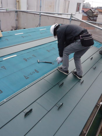 ルーフィングシート張り 屋根材施工